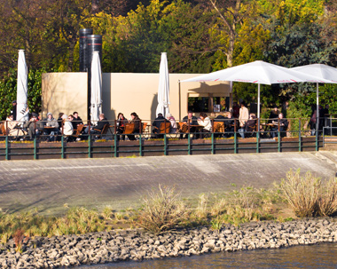 Strandbar Övelgönne, aufschwimmbarer Pavillon am Museumshafen Övelgönne 50 m² Gewerbefläche für Gastronomie Entwurf: Michel Architekten, Hamburg |